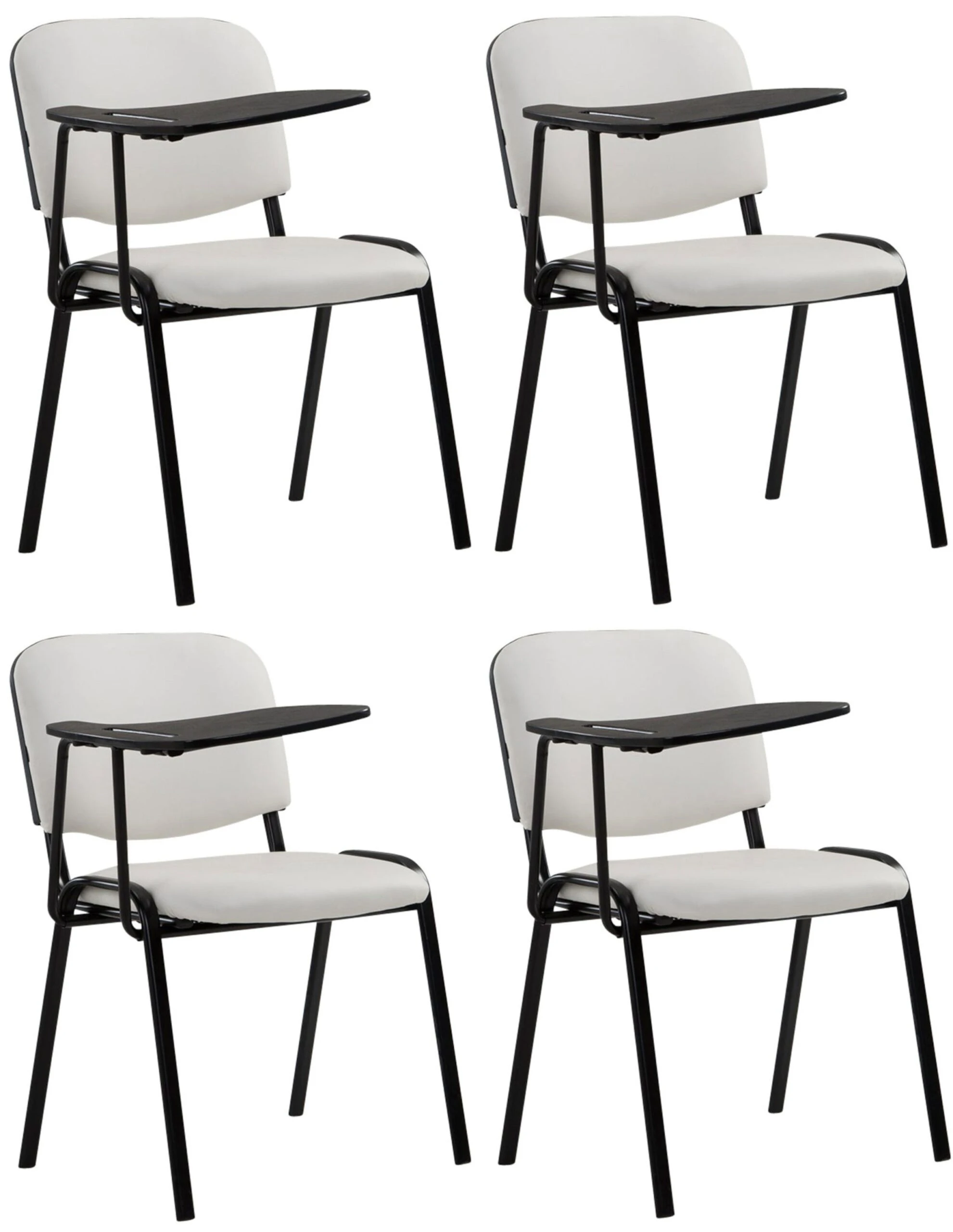 Das Set für vier Personen schafft eine komfortable Umgebung für Meetings, Vorlesungen und Konferenzen. Jeder Stuhl ist bequem gepolstert und zusätzlich auf der rechten Seite mit einer klappbaren Ablagefläche ausgestattet. Diese eignet sich bestens als Arbeitsfläche. Durch den Tisch sind die Stühle nicht stapelbar. Ein modernes 4-Fuß Gestell aus Metall sorgt für Stabilität. Mit dem Set aus vier Konferenzstühlen lassen sich schöne Sitzkompositionen in den Farben Braun, Grau, Rot, Schwarz, Creme, Weiß, Orange oder Grün erstellen.