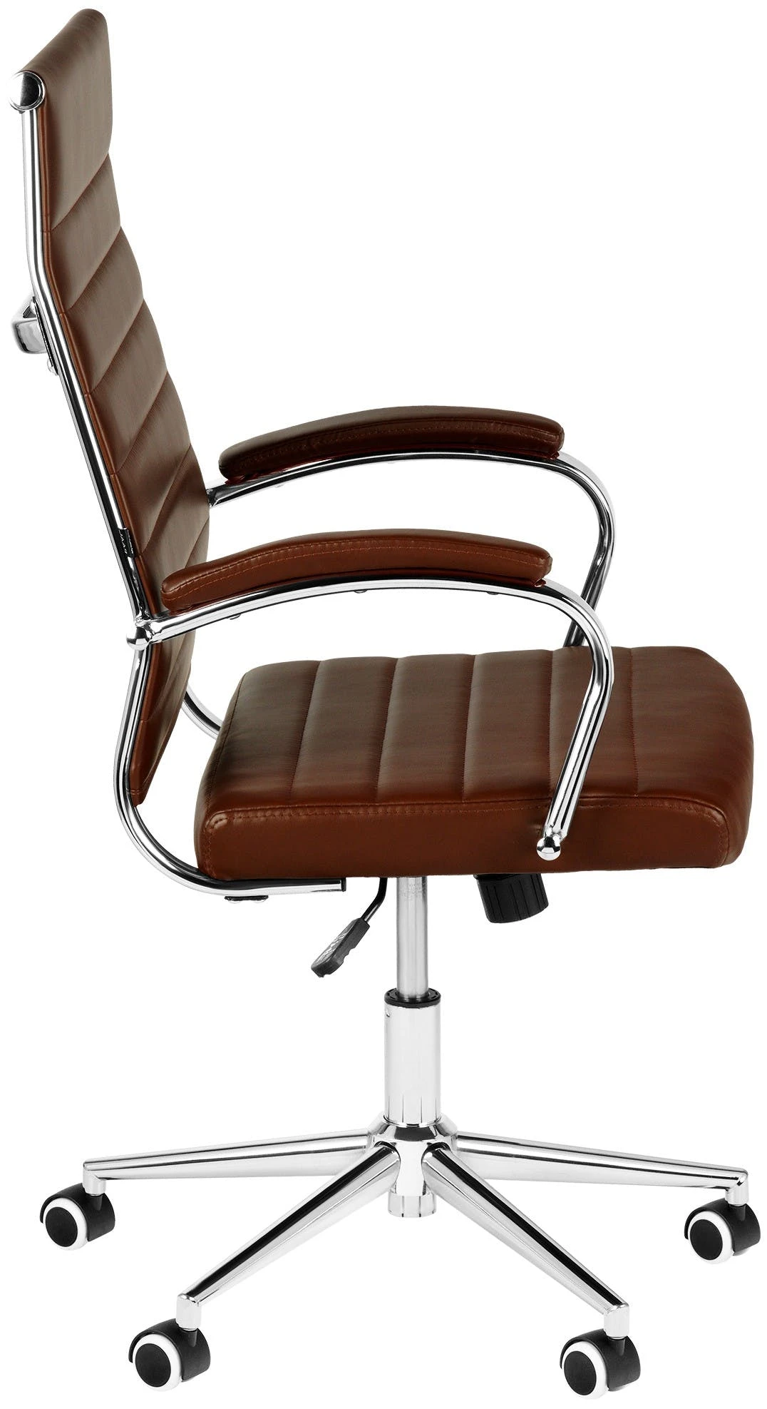 Der Schreibtischstuhl Mollis ist ein extrem hochwertiger Bürostuhl mit einer sehr feinen Polsterung mit Kunstlederbezug. Kunstlederbezüge haben den Vorteil, dass sie elastisch sind und sich bei Entlastung wieder glatt ziehen. Dies sieht nicht nur schöner aus, sondern erhöht zusätzlich die Lebensdauer des Sitzbezuges. Die Sitzhöhe ist stufenlos verstellbar. Das Gestell ist aus Metall und sehr stabil. Der Bürostuhl steht standsicher auf fünf Leichtlaufrollen. Egal ob Hart- oder Teppichböden – Sie werden immer leicht und locker über den Boden rollen können.