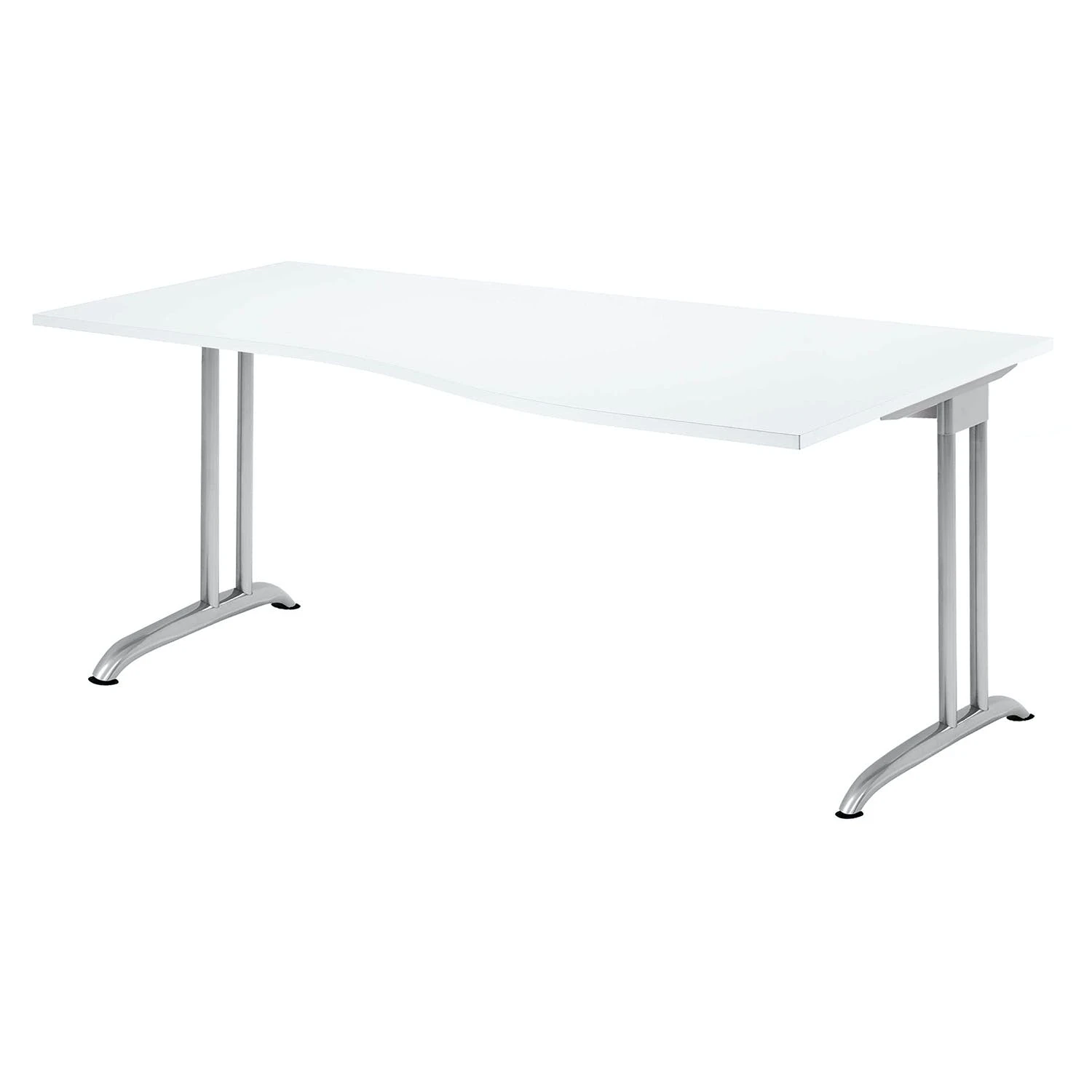 Freiform-Schreibtisch Berlin, mit formschön geschwungenem C-Fuß Design. Der melaminharzbeschichte Schreibtisch auf einem belastbaren Stahl-Rundrohr-Gestell überzeugt durch sein elegantes Design, das sich harmonisch in jede Umgebung und Raumgestaltung einfügt sowie durch seine besonders leicht zu reinigende Oberfläche.Langlebiges, pflegeleichtes, verschweißtes Stahl-Gestell, Stahrohr-Gestell aus Rundrohr, Klassisches, formschön geschwungenes C-Fuß Design, Winkelschreibtisch mit wendbarer Tischplatte, Tiefer Schenkel kann links oder rechts montiert werden, 25 mm melaminharzbeschichtete Tischplatte aus Holzspanwerkstoff nach DIN 68765, Tisch- und Arbeitshöhe 720 mm nach DIN-Norm, Gestell einbrennlackiert, Lieferung: Zerlegt verpackt im Karton Farbe: Gestell: RAL 9006 Weißaluminium, Tischplatte: Weiß.Maße in mm ca.: Höhe: 720 mm, Breite: 2000 mm, Tiefe: 1200/800 mm.