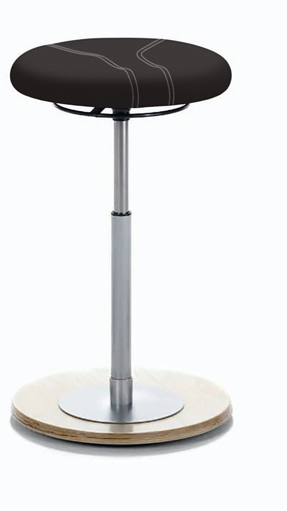 Gepolstert, mit dekorativer Steppnaht, Bewegungsfreiheit 360°, stufenlose Höhenverstellung durch Gasfeder, Ringauslösung, Bodenplatte Buche, Antirutschbelag schlierenfrei, Sitzhöhe 54 – 79 cm.
