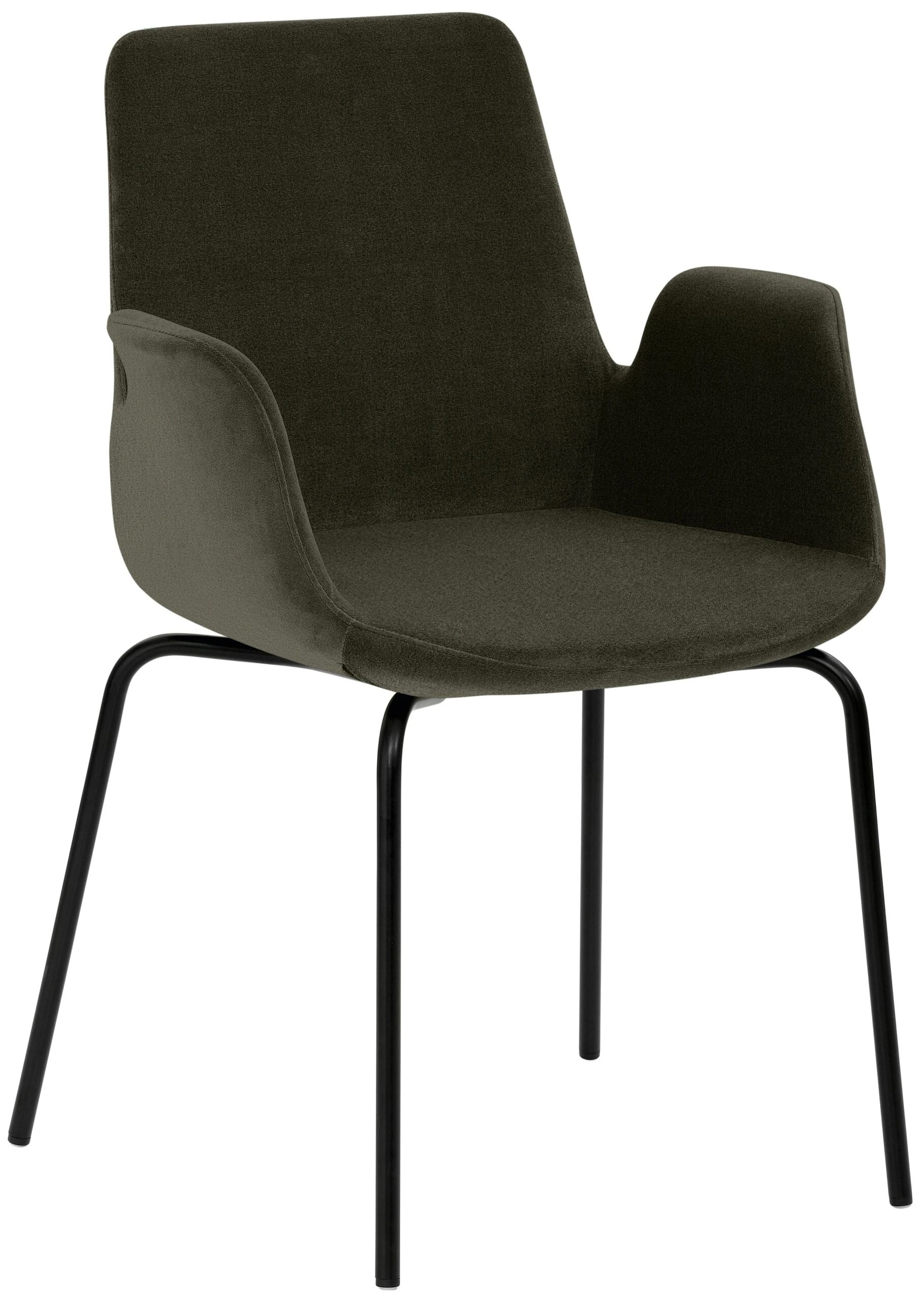 4-Fuß-Gestell, Chrom gebürstet Edelstahllook, mit integrierten Armlehnen, rundum gepolstert, Sitzhöhe 48 cm.
