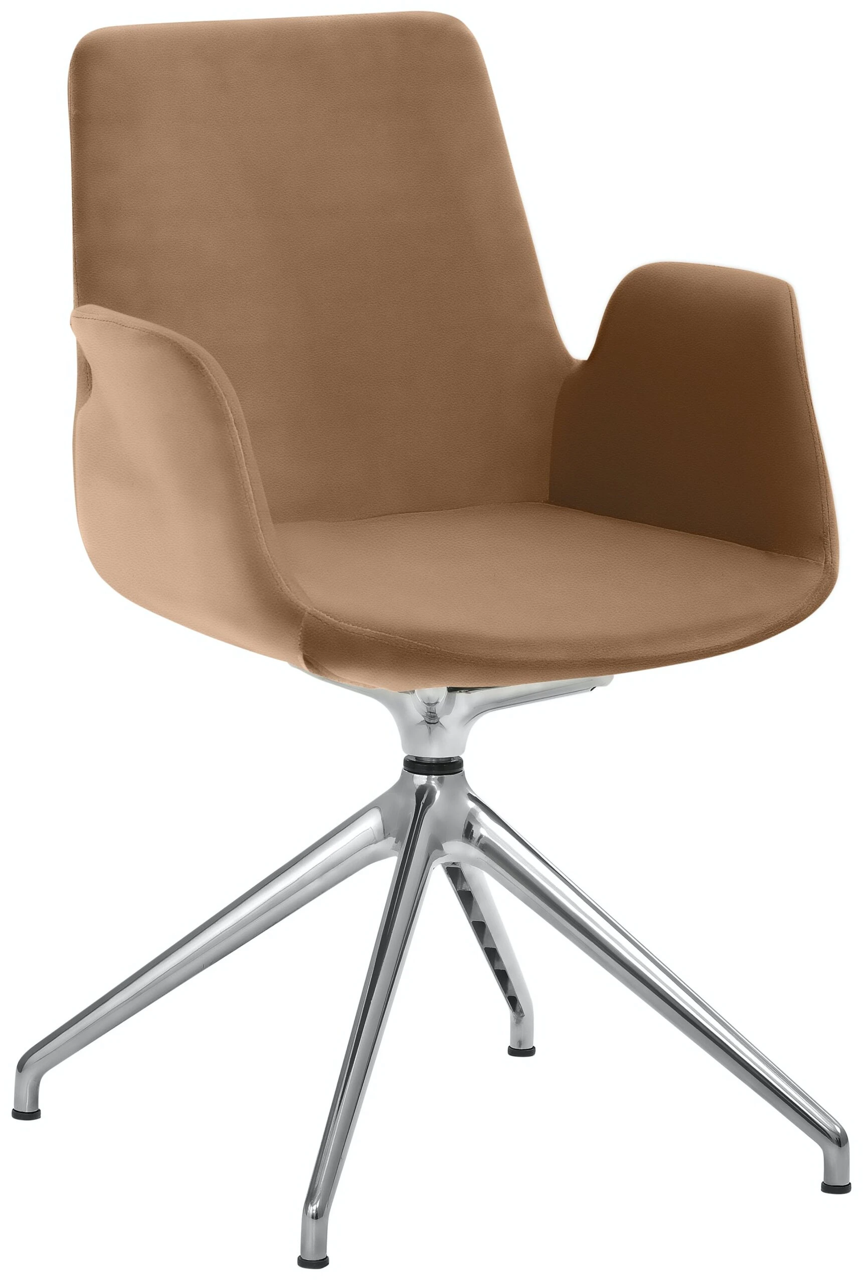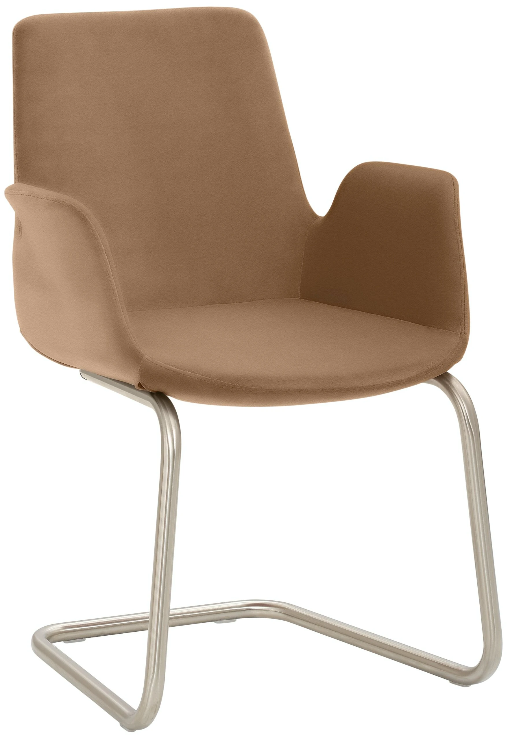4-Fuß-Gestell, Chrom gebürstet Edelstahllook, mit integrierten Armlehnen, rundum gepolstert, Sitzhöhe 48 cm.