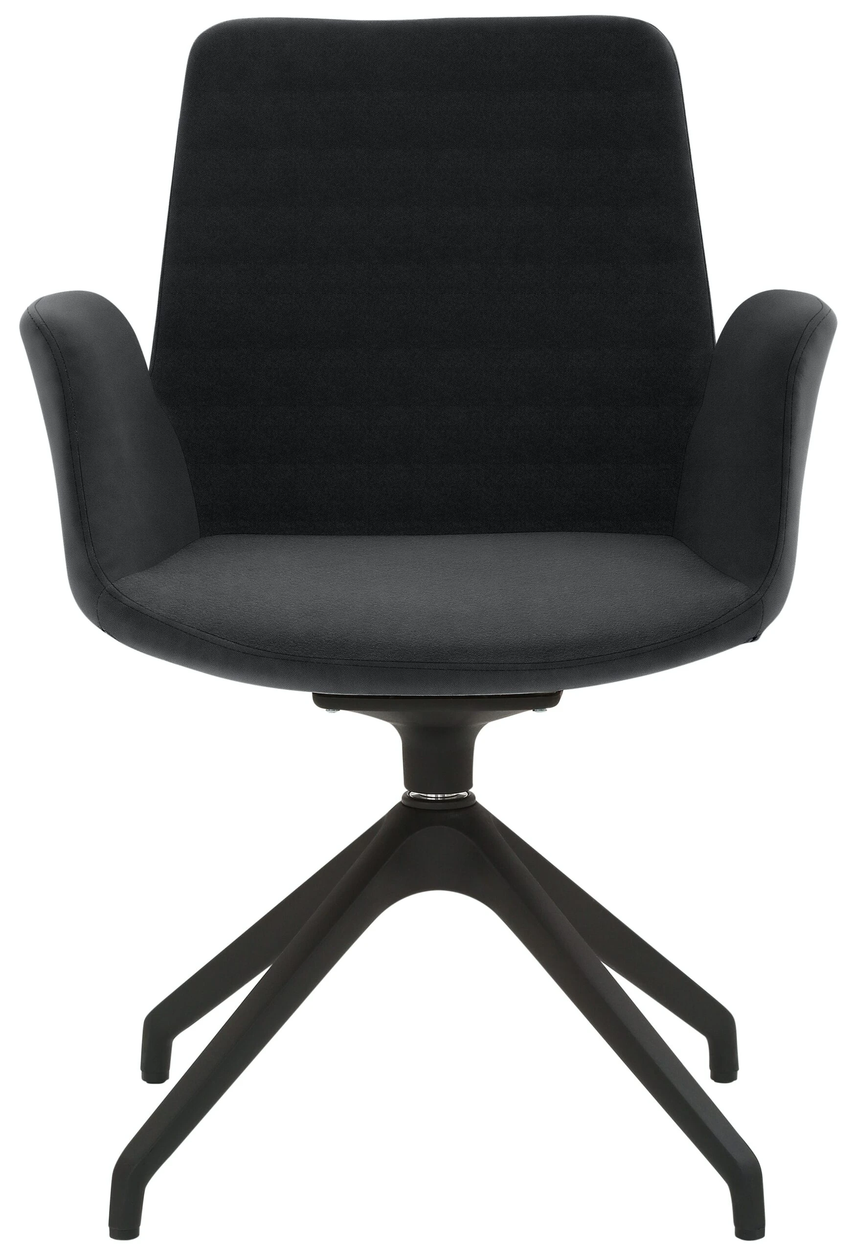 Freischwinger-Gestell, pulverbeschichtet schwarz, mit integrierten Armlehnen, rundum gepolstert, Sitzhöhe 49 cm.