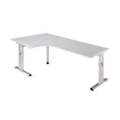 Freiformtisch New York – 720 X 1800 X 1000/800 Mm – C-Fuß Design – Weißaluminium/lichtgrau 110550